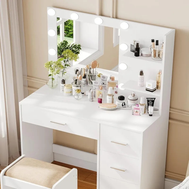 Makeup Vanity Table with Lighted Mirror