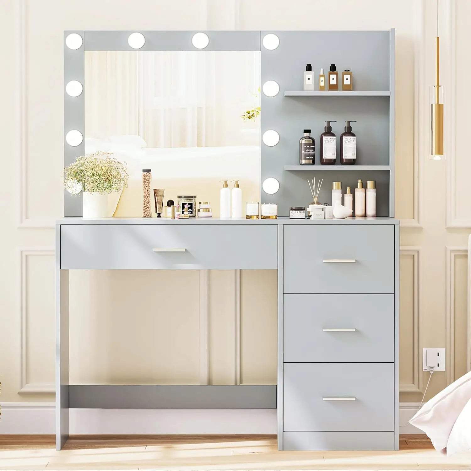 Ample Storage: With 4 spacious drawers, this vanity offers plenty of space to store makeup, accessories, and other personal items. Keep your beauty essentials organized and easily accessible.