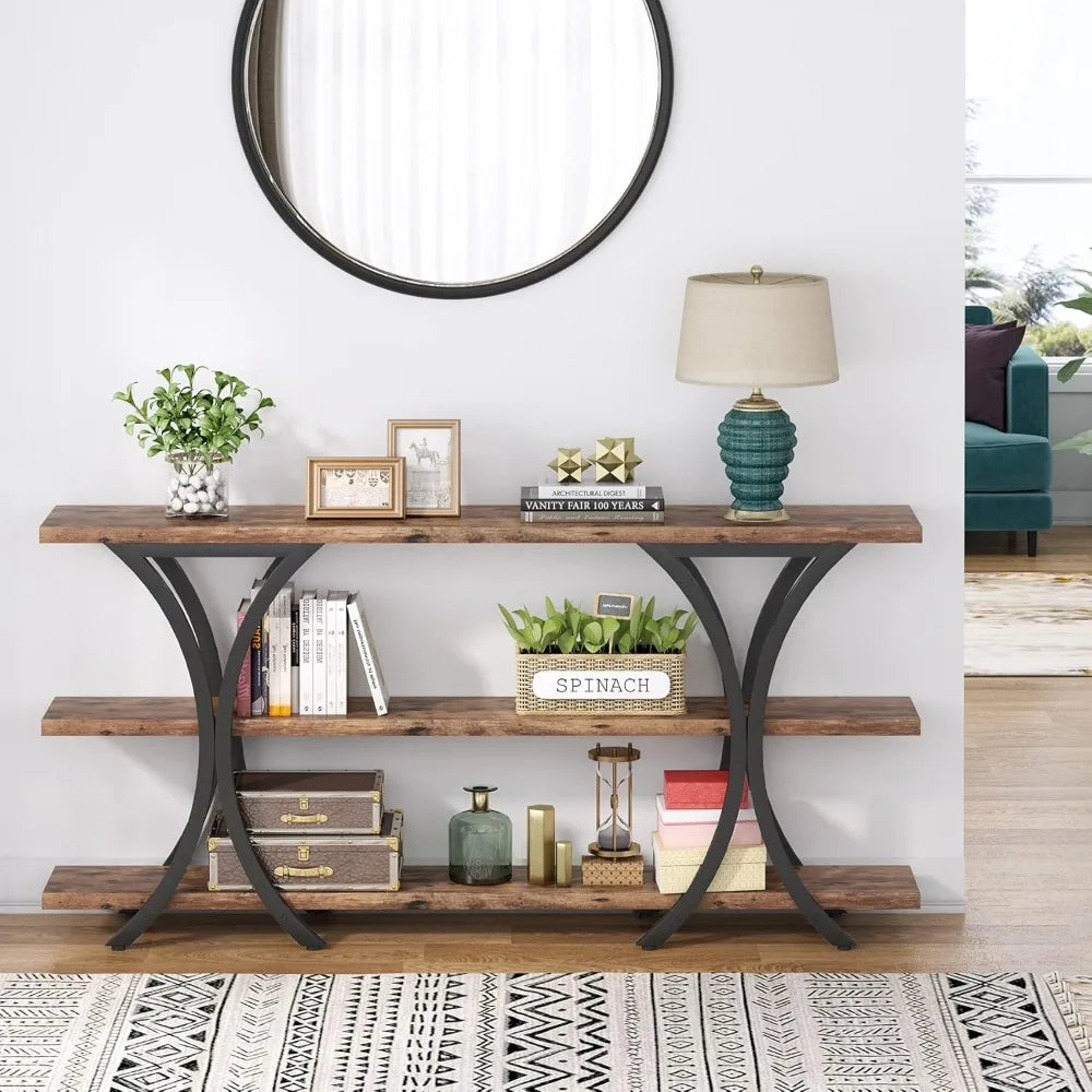 Ample Storage: Featuring 3-tier shelves, this console table offers plenty of room for displaying items such as books, framed photos, plants, or other decorative pieces. Its narrow design makes it ideal for use in tight spaces, offering storage without taking up too much room.