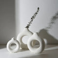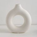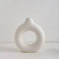 A sleek, modern vase in a unique donut shape, designed to hold a single flower with elegance. The minimalist style and circular design make it an eye-catching addition to any space, perfect for contemporary home decor.